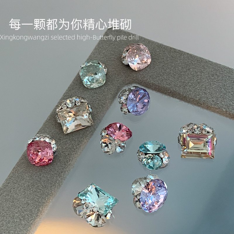 高品质美甲钻无底托堆钻爆闪彩钻鸽子蛋指甲饰品网红爆款美甲饰品