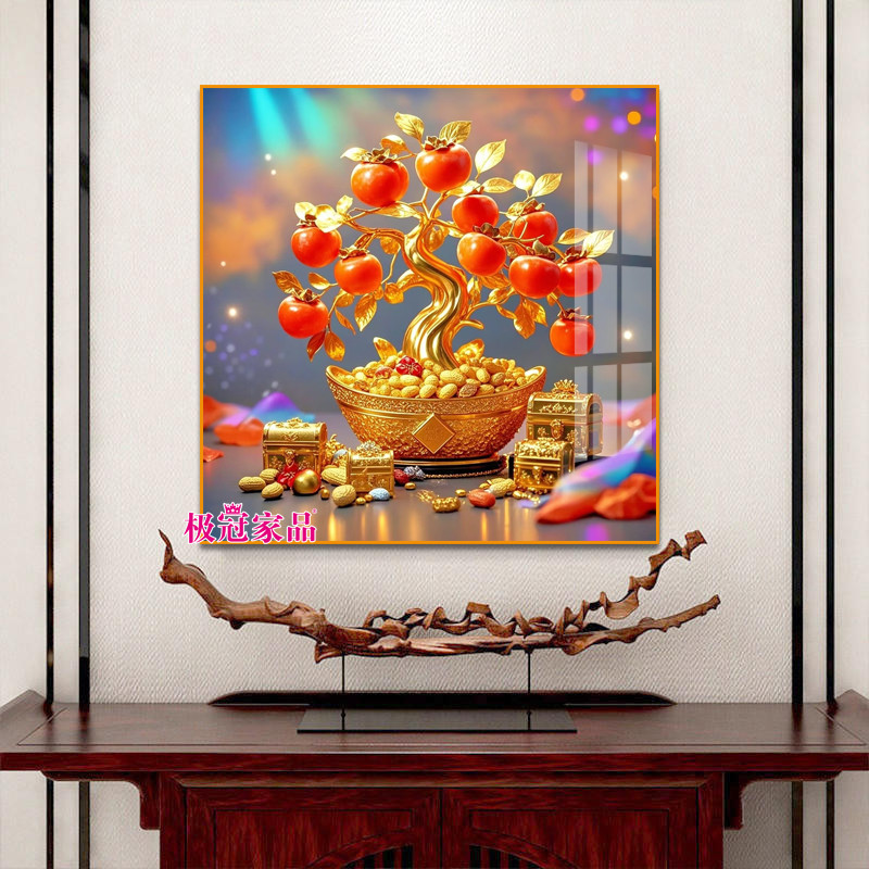 2025新款钻石画柿子发财树客厅手工diy贴钻画十字绣满钻高级感