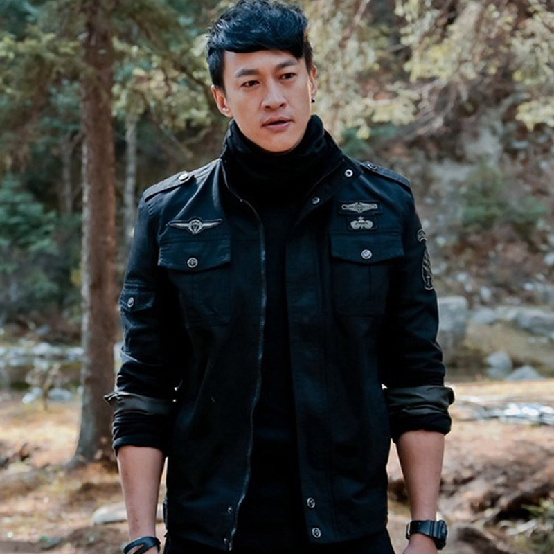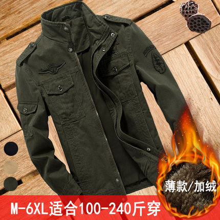 秋冬季纯棉夹克男加绒飞行员外套宽松休闲男士立领工装夹克衫耐磨