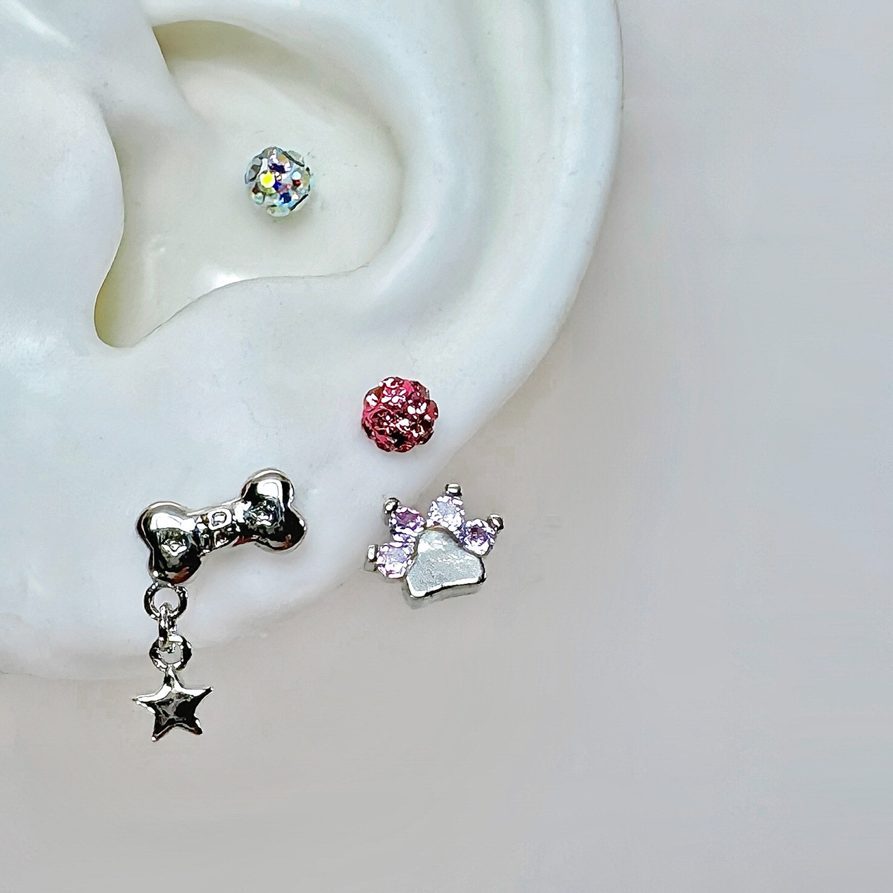 二十二丁目猫爪骨头耳钉女星星耳骨钉钛钢耳蜗钉闪钻耳圈耳环耳饰