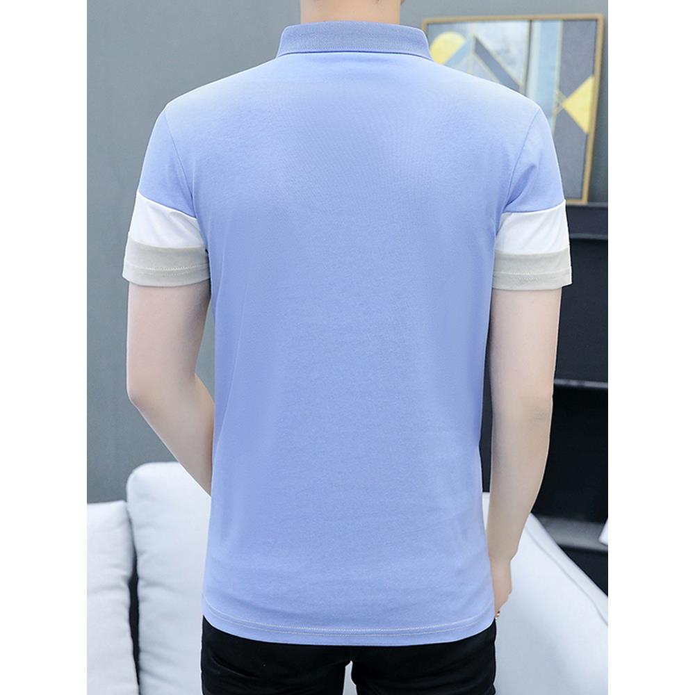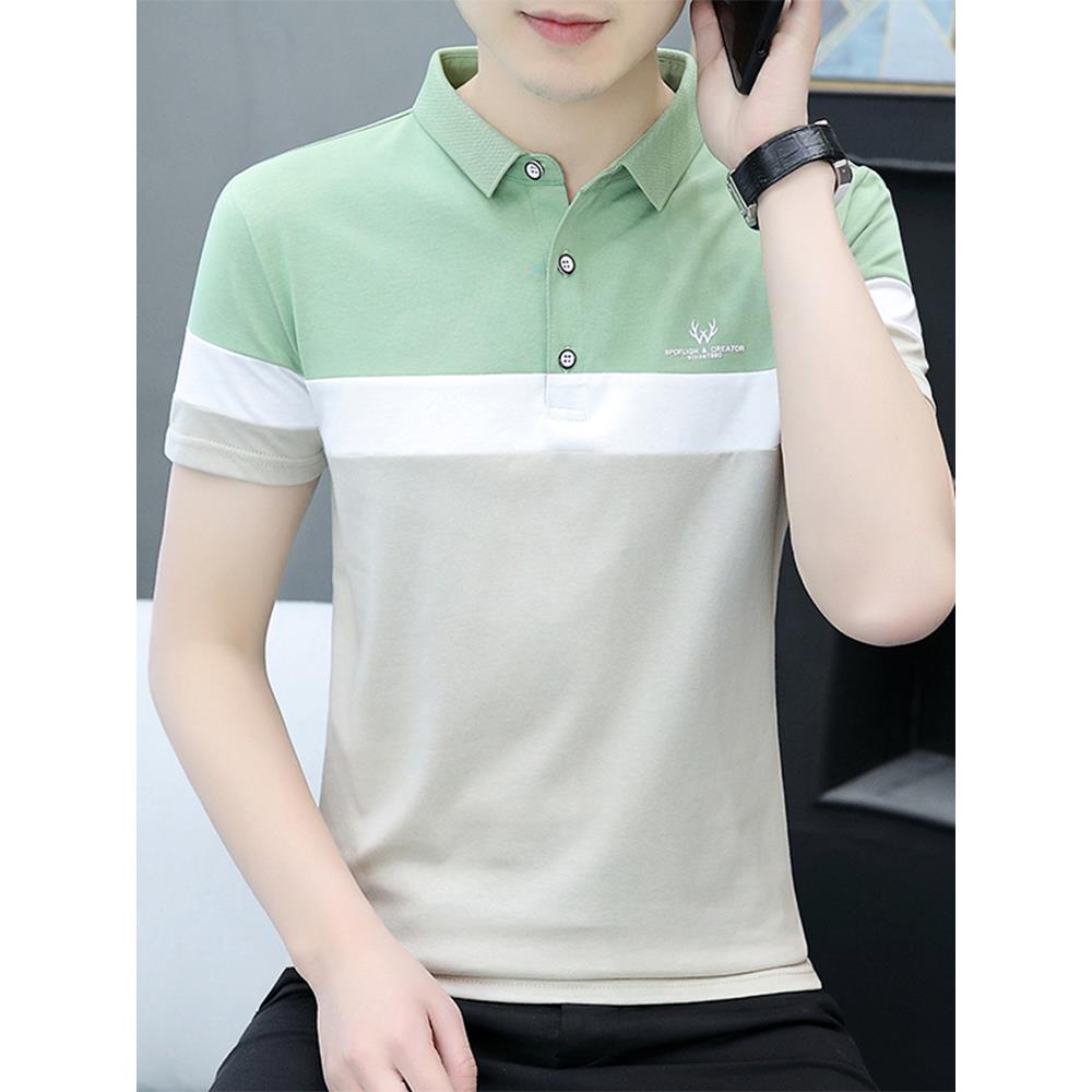 以纯商务半袖t恤休闲百搭翻领上衣服撞色条纹短袖polo衫男士夏季
