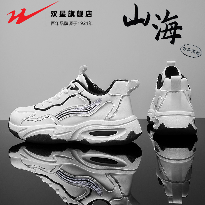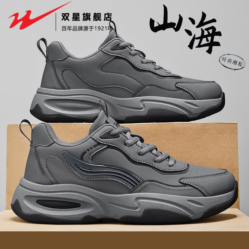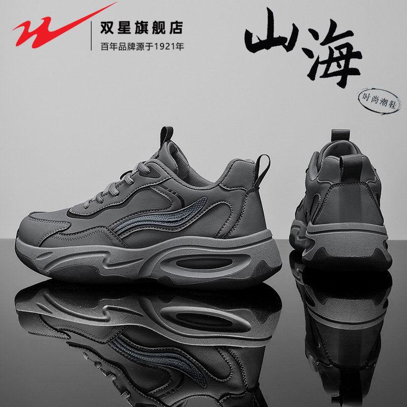 双星黑色男鞋春秋款男士皮面防水防滑厚底耐磨运动休闲工作劳保鞋