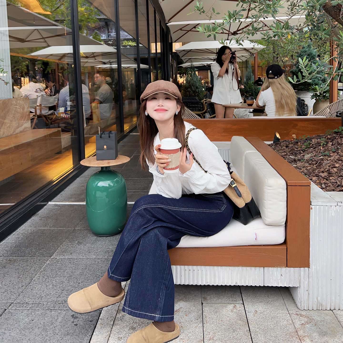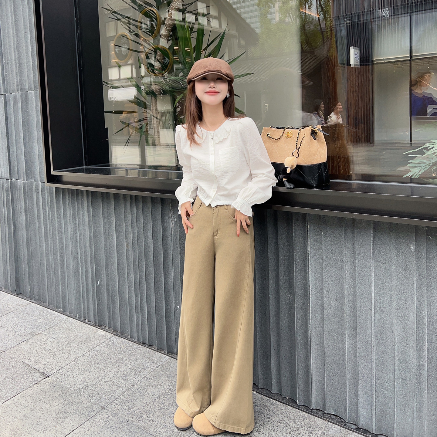 小小家 小个子小码娃娃领乖乖衬衫长袖显高松紧腰短款纯棉上衣150