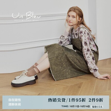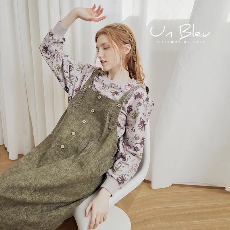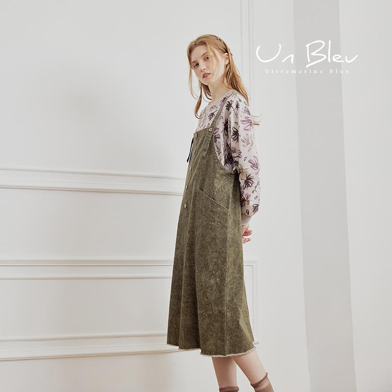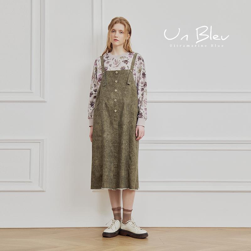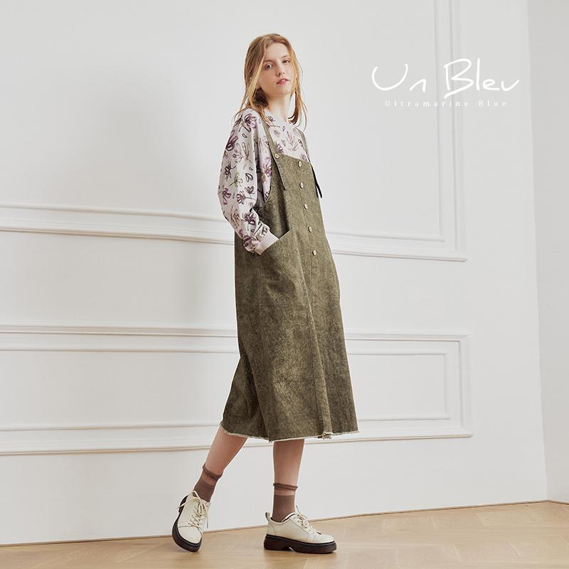 unbleu背带裙女春秋女装2025新款宽松休闲纯棉吊带连衣裙绿色裙子