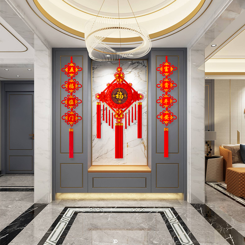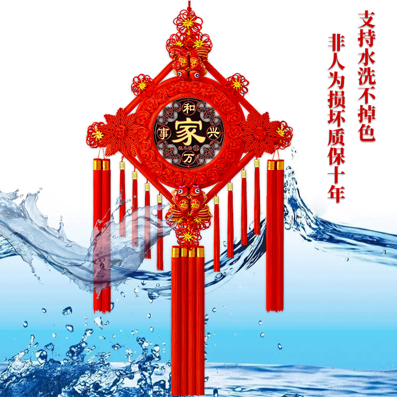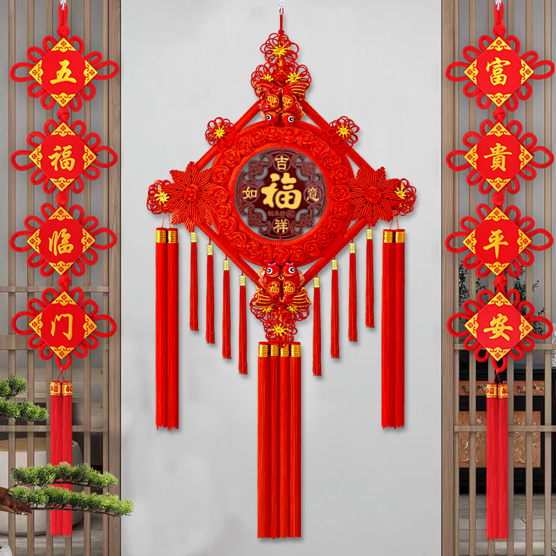中国结挂件客厅大号福字装饰x高档桃木电视背景墙玄关挂饰春节乔