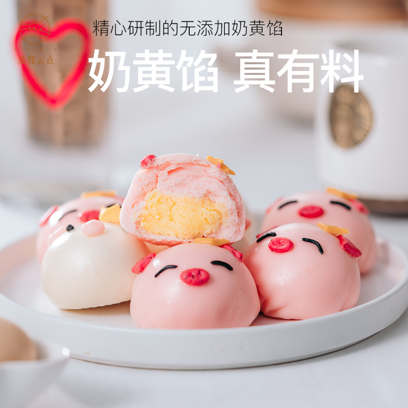 爱稞云点萌萌小猪奶黄包卡通馒头儿童早餐食品速冻包子宝宝早点