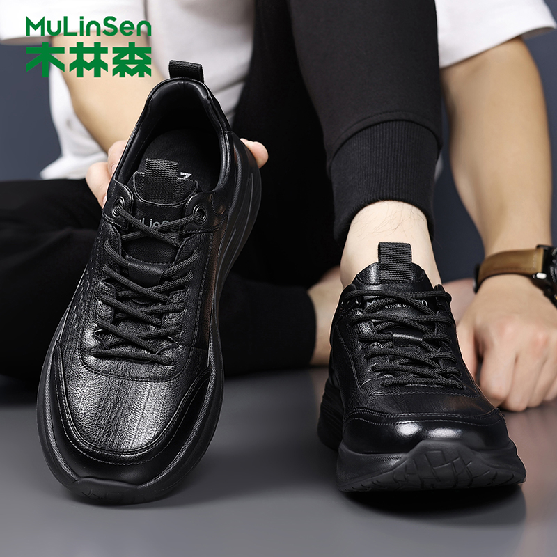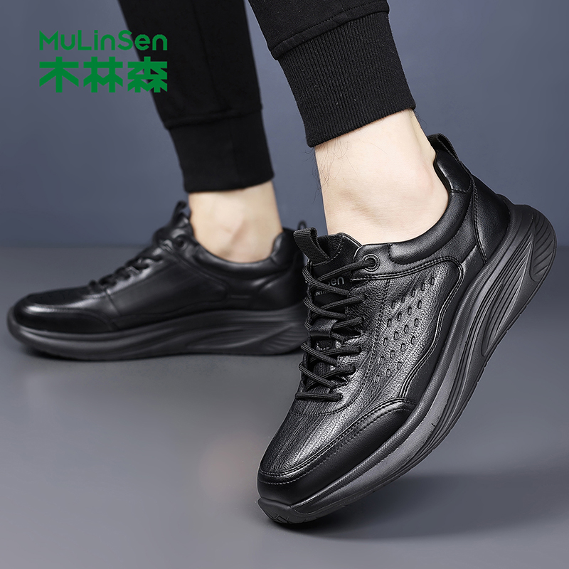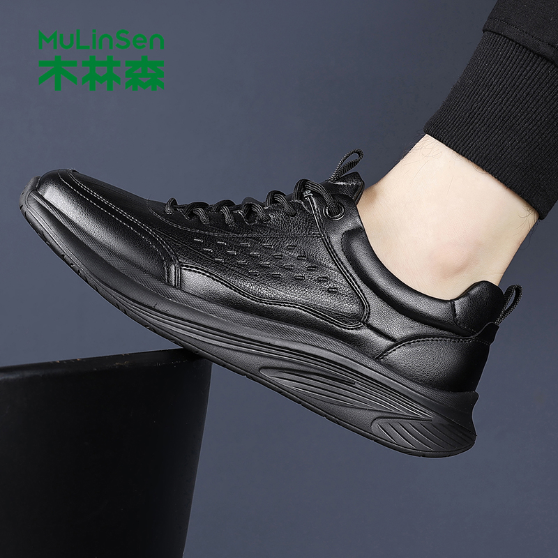 木林森男鞋2025新款男士皮鞋商务休闲鞋真皮透气软底运动鞋子男