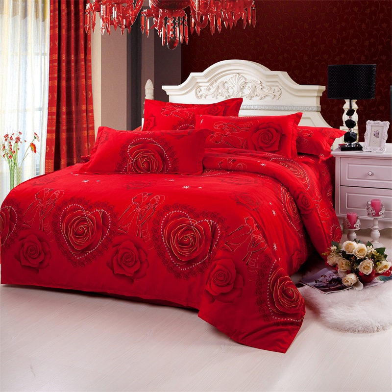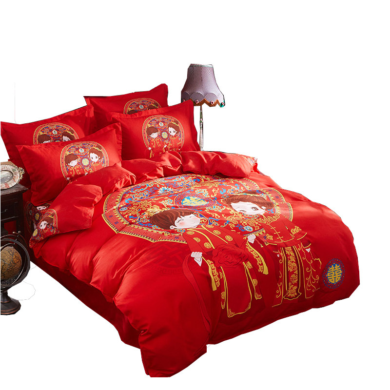 婚庆全棉四件套大红1.8m/2.0米床双人纯棉结婚被套床单式床上用品
