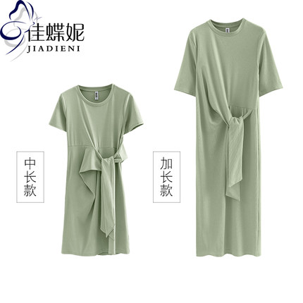夏季新款圆领纯白宽松短袖体恤打底中长款连衣裙休闲女装纯色T恤
