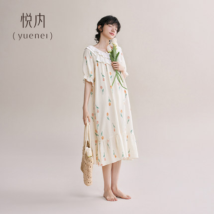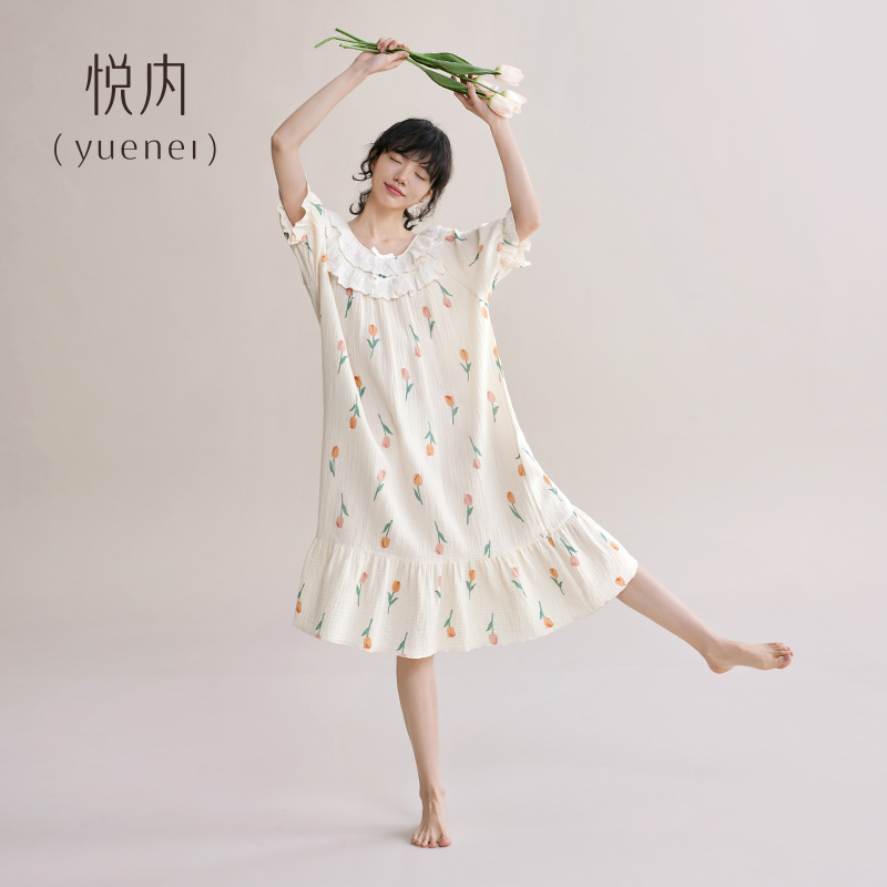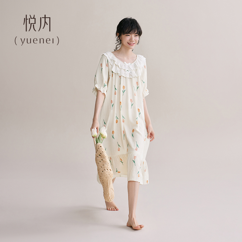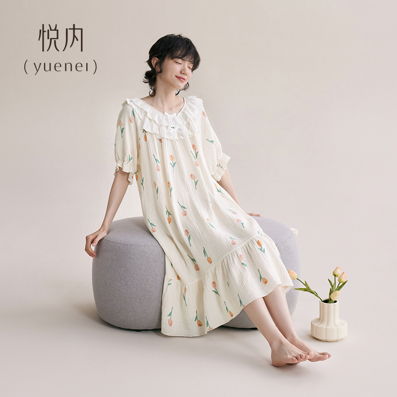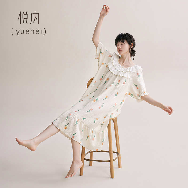 悦内睡裙女士睡衣女款夏季夏款夏天纯棉纱布短袖薄款公主风日系