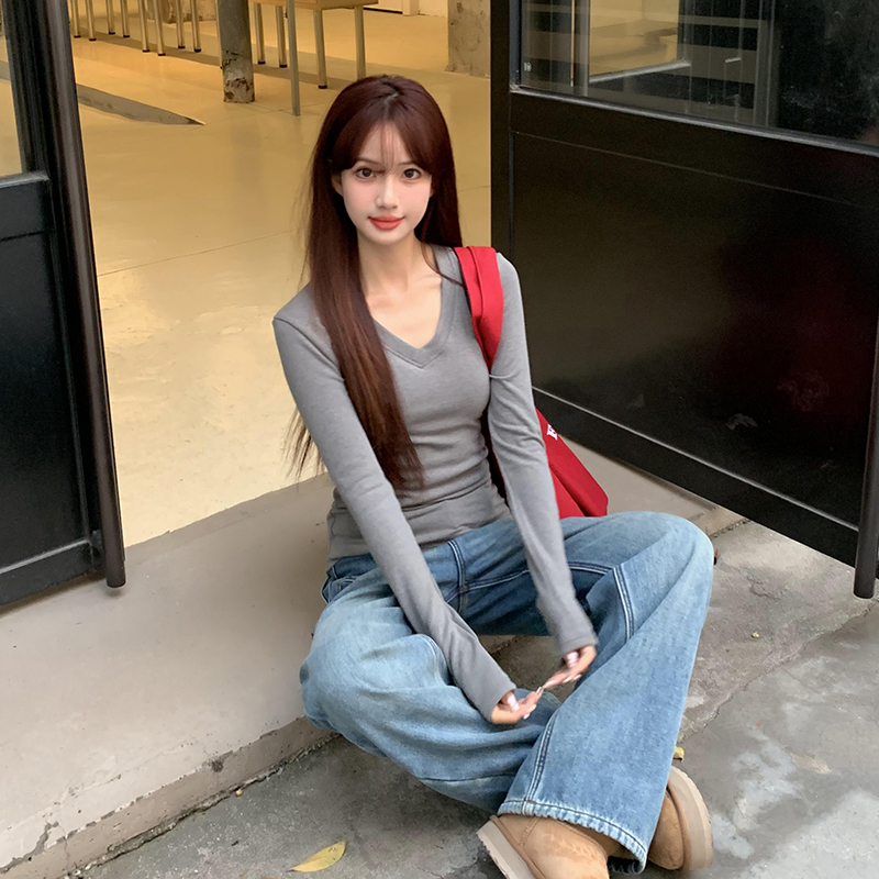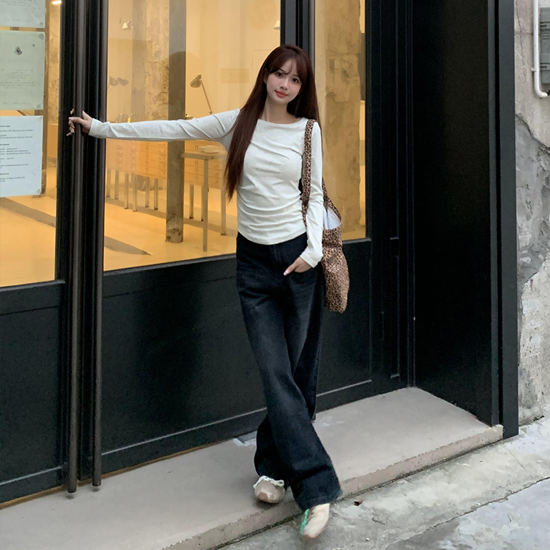 橘子树在哪儿做旧水洗插袋设计加绒牛仔裤女秋冬直筒显瘦拖地长裤