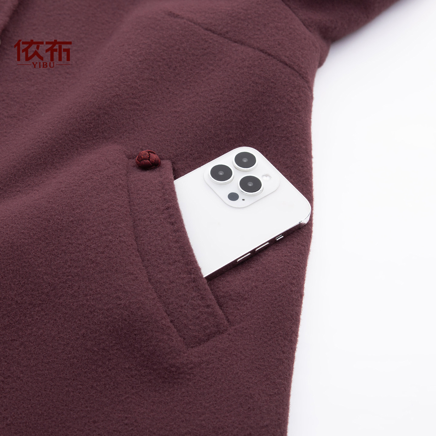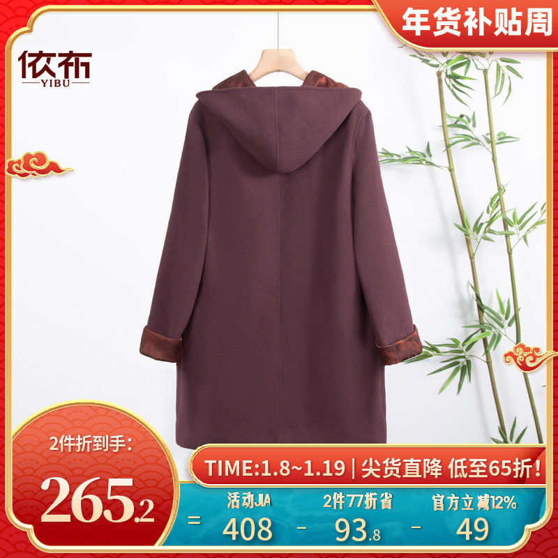 依佈新中式妈妈装冬季新款国风大衣中老年女士连帽中长款呢子外套