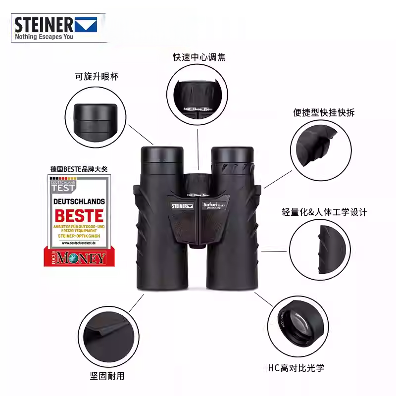 德国STEINER视得乐双筒中调望远镜超锐10x42高清户外露营旅行2308