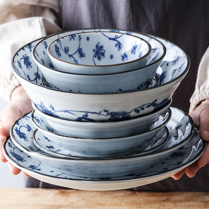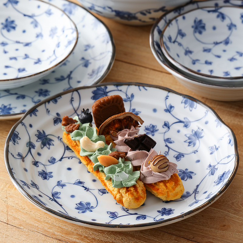 日本进口美浓烧蔓唐草陶瓷碗蘸酱碟水果盘子汤面碗饭碗日式餐具