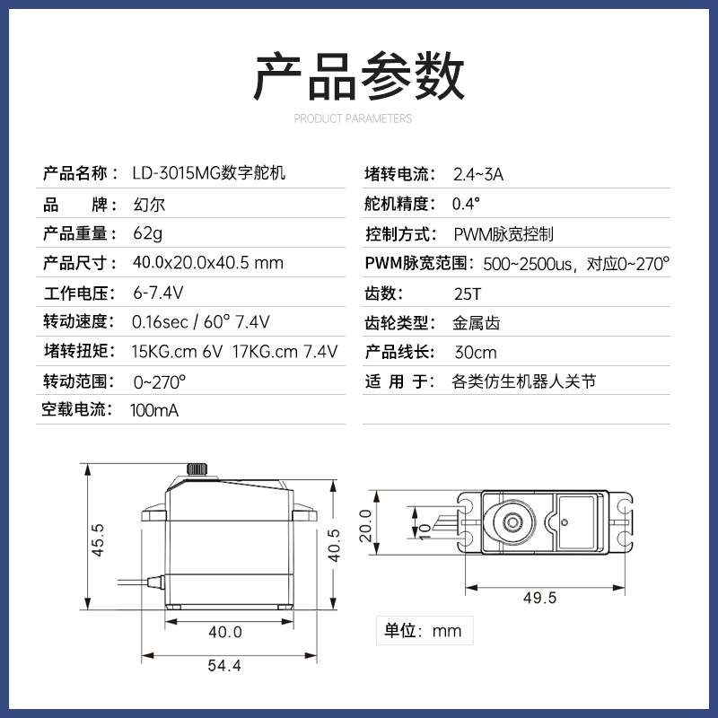 LD-3015MG数码/数字舵机270度金属齿轮 电子设计竞赛专用 小于20W