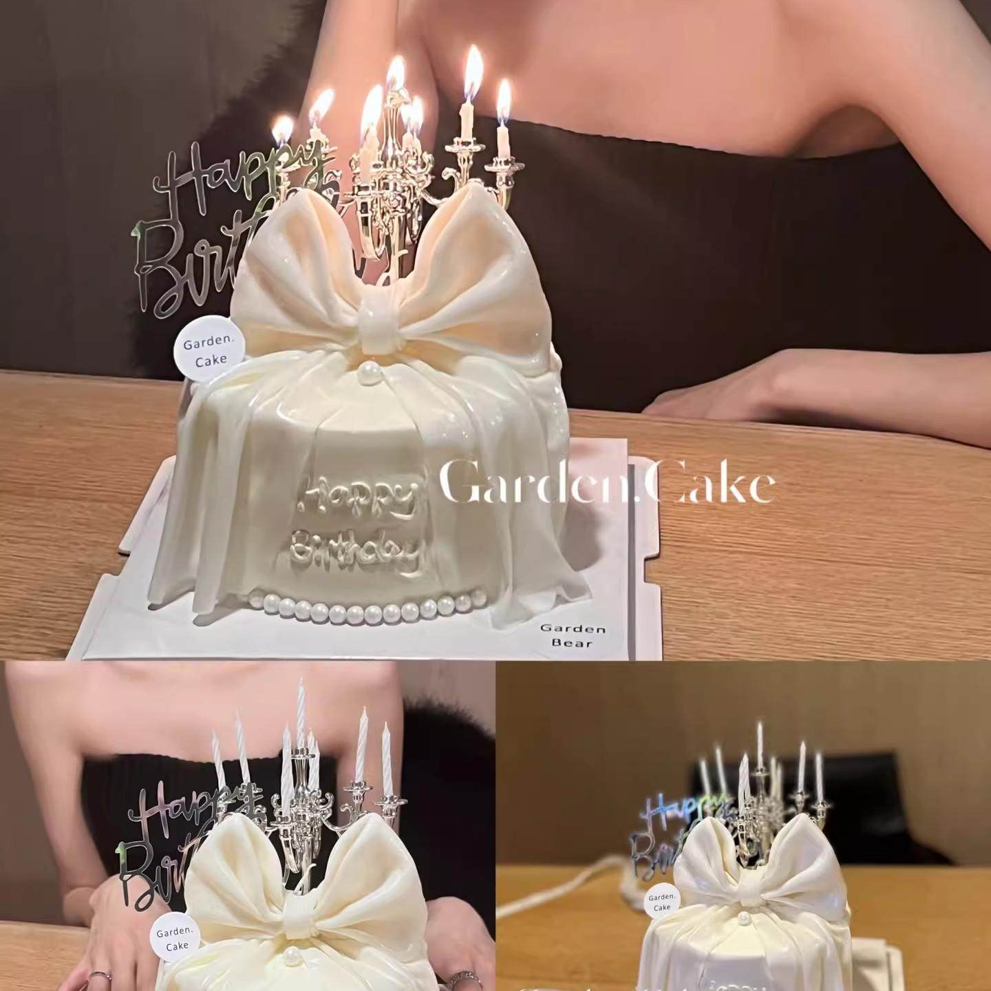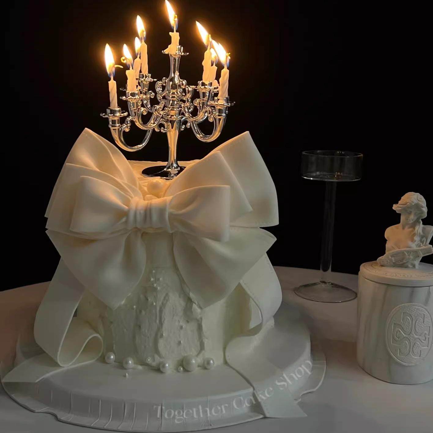 网红复古欧式银色烛台蛋糕装饰摆件女神仙女生日装扮烘焙插件配件
