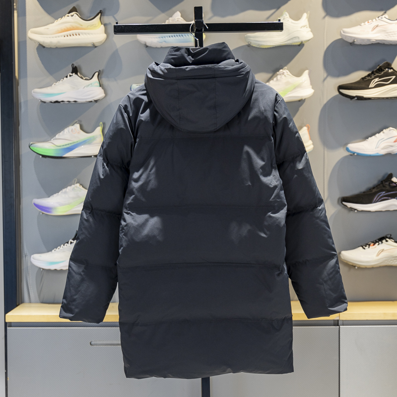 李宁连帽中长款男女通用羽绒服
