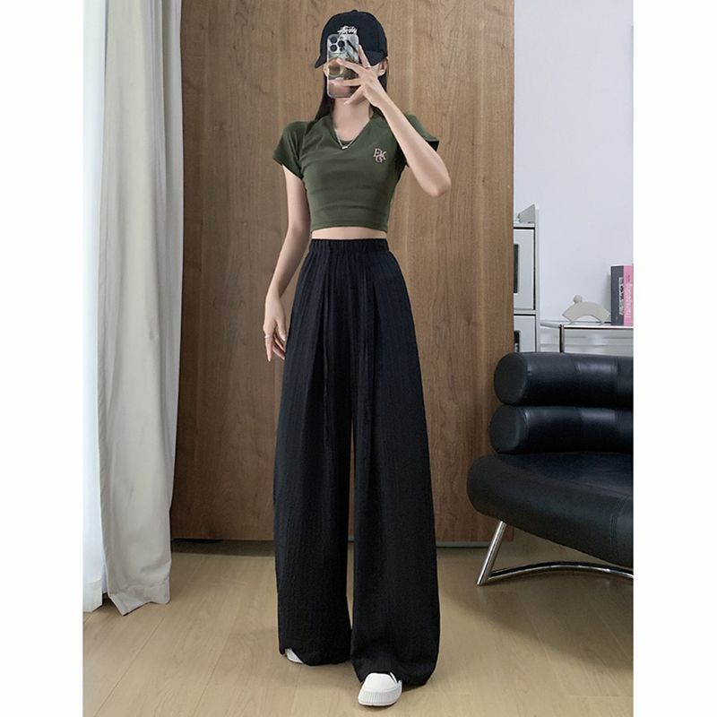 冰丝阔腿裤女夏季薄款高腰垂感防晒裙裤子小个子休闲直筒拖地长裤