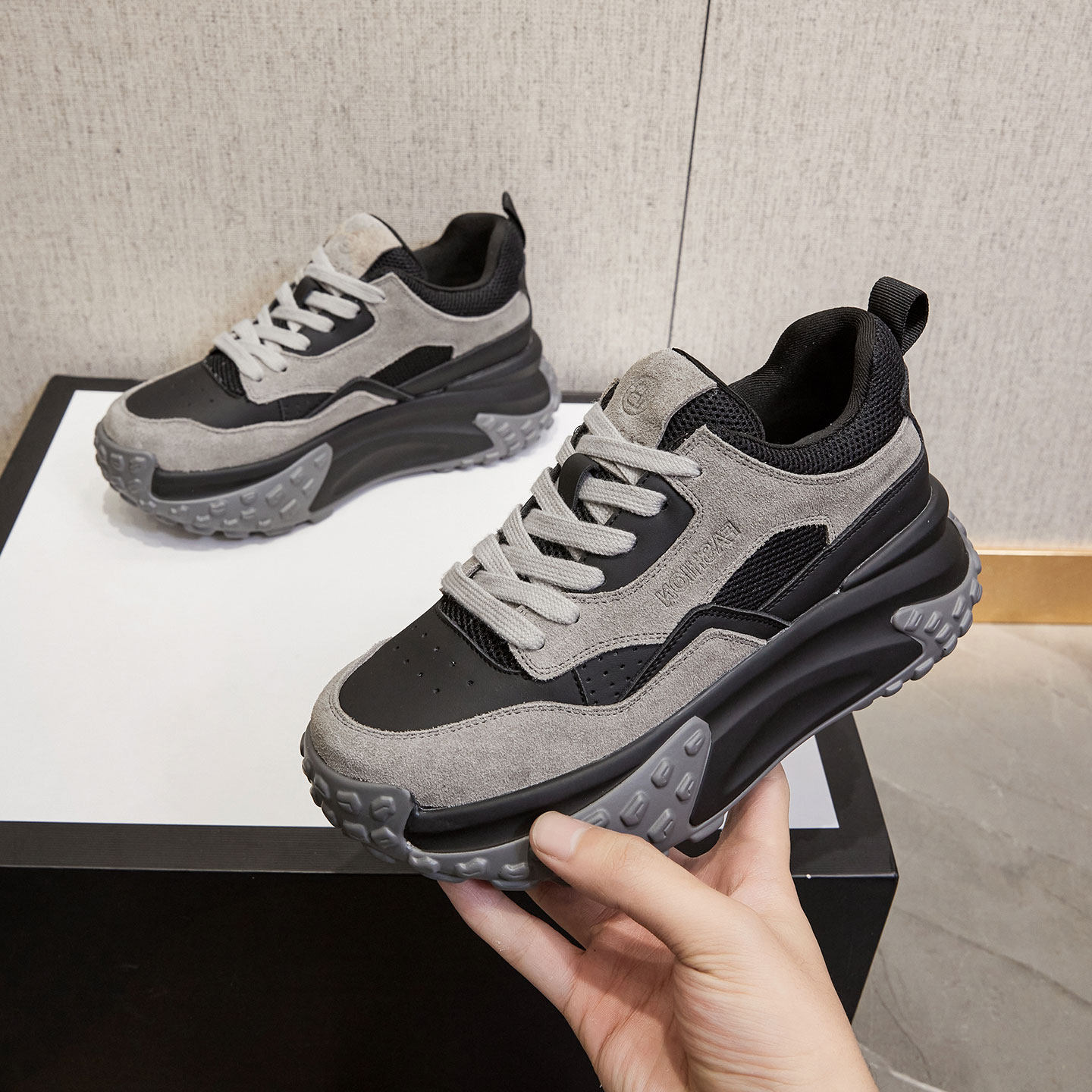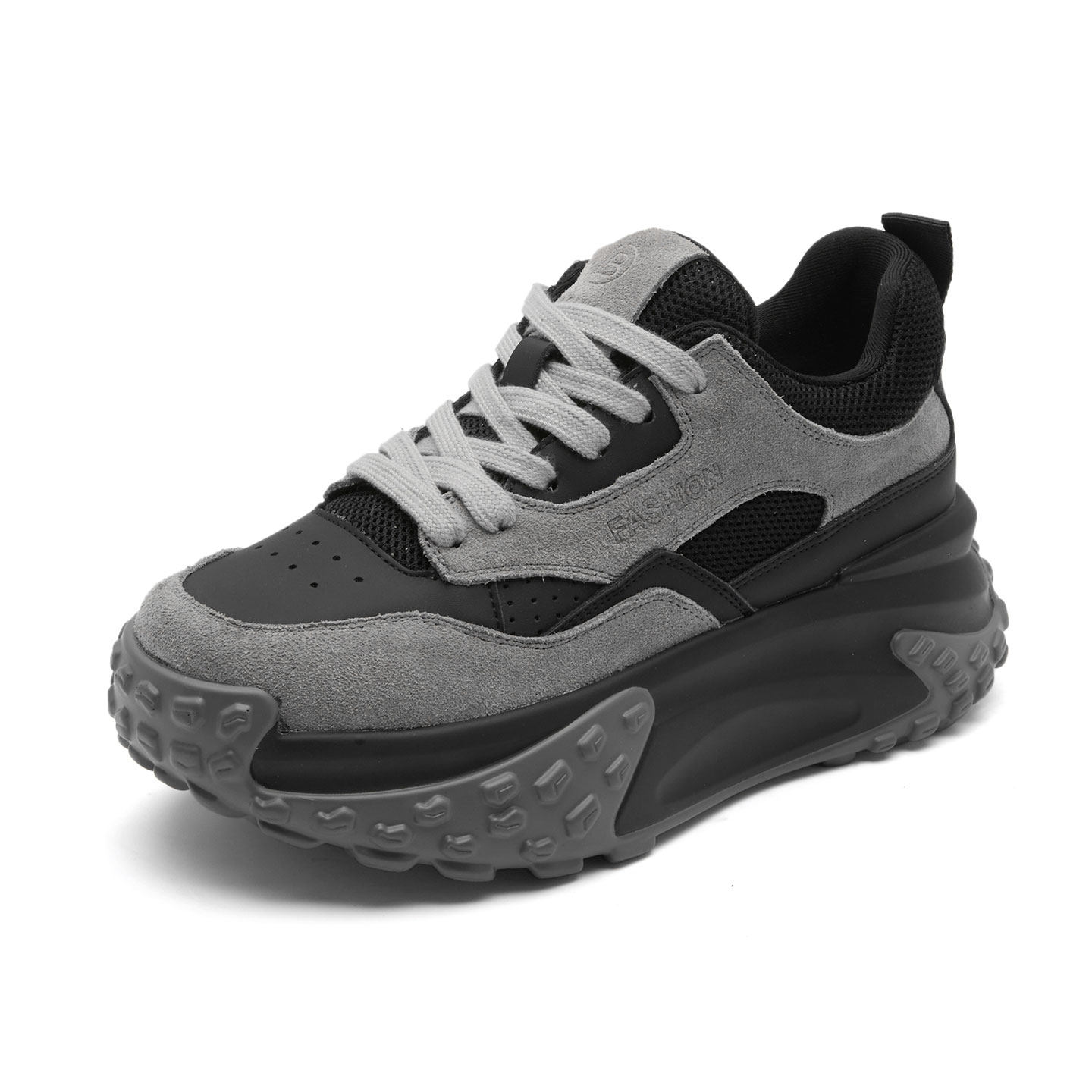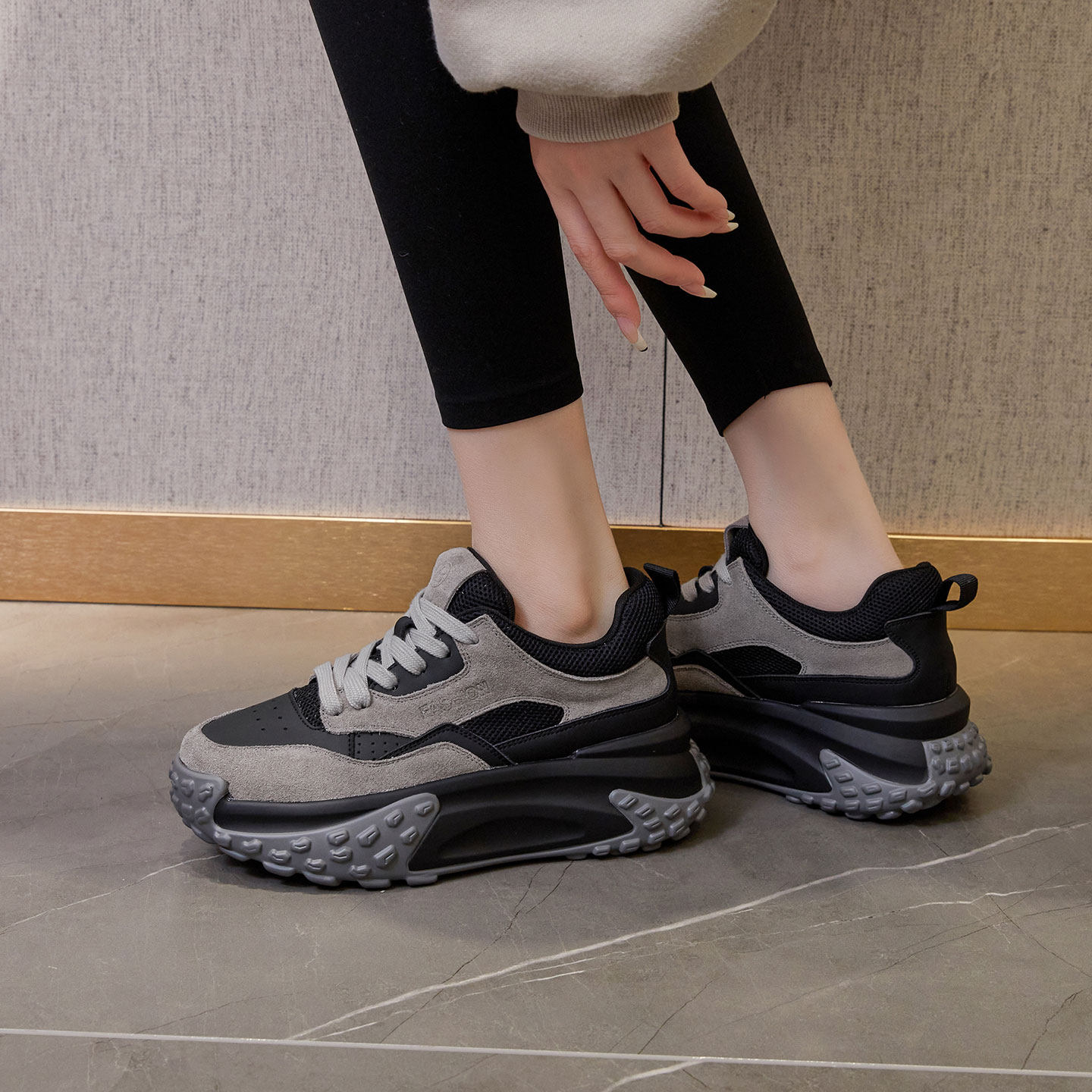 超火厚底老爹鞋女2025新款小个子增高秋冬季加绒真皮轻便运动鞋子