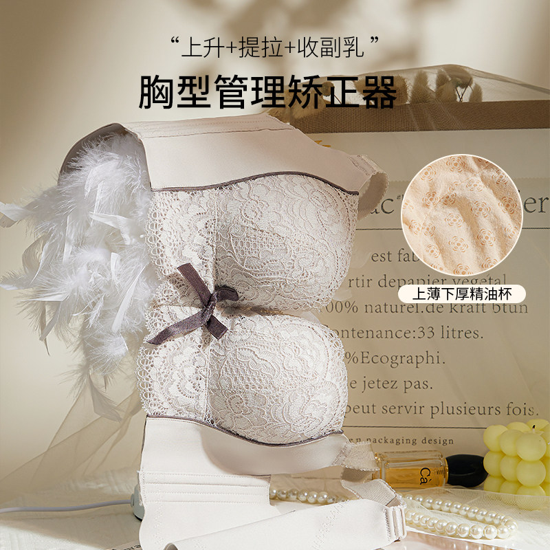 小胸上薄下厚聚拢丰胸按摩文胸精油水袋显胸大内衣五排扣调整型女