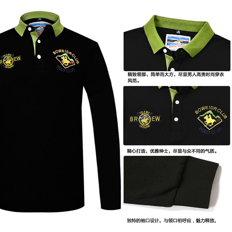品牌男装纯棉长袖T恤男潮牌Polo衫翻领上衣高档刺绣夏装有领T秋季