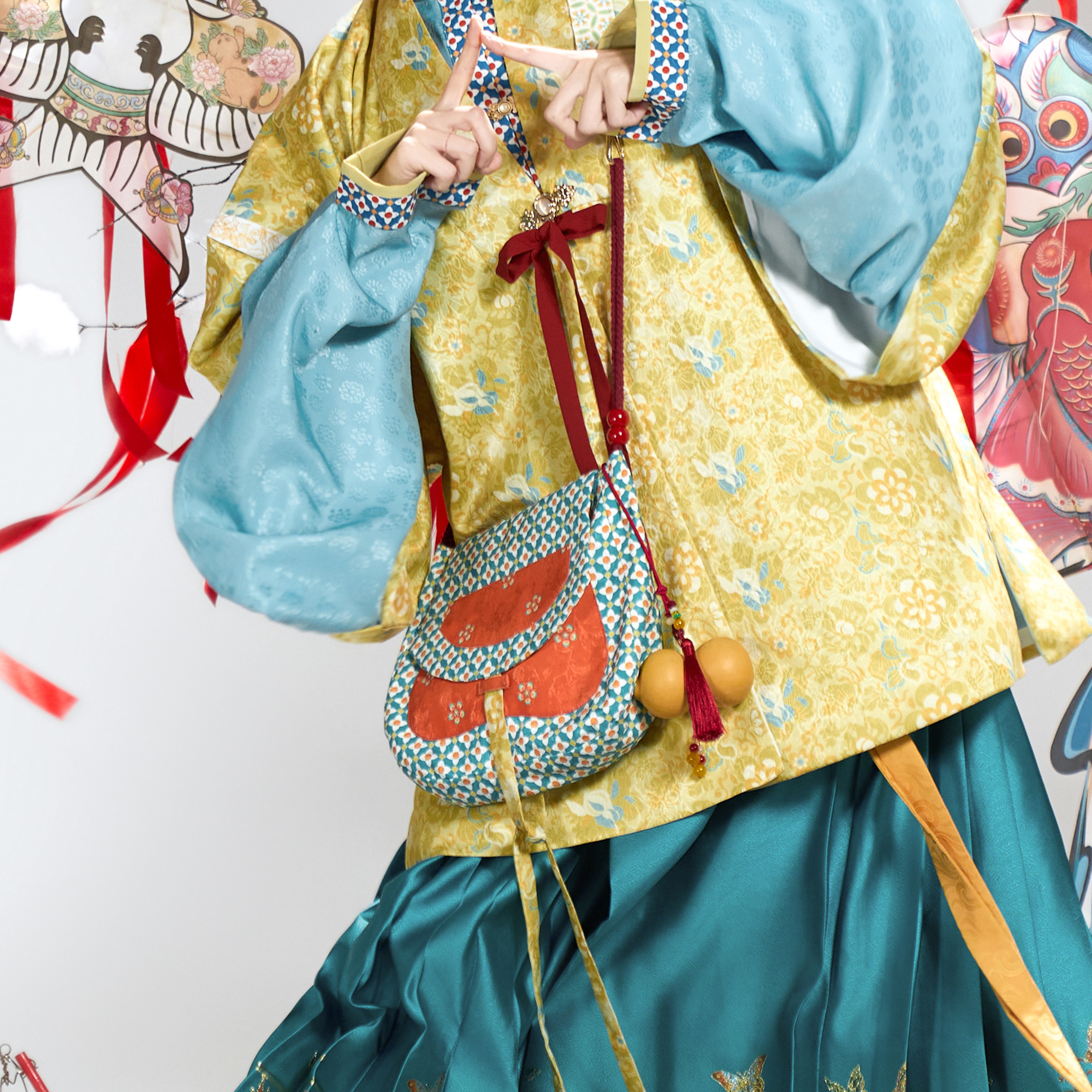 花朝记|小货郎|汉服百搭日常配饰仿古画民族风双色印花斜挎小包