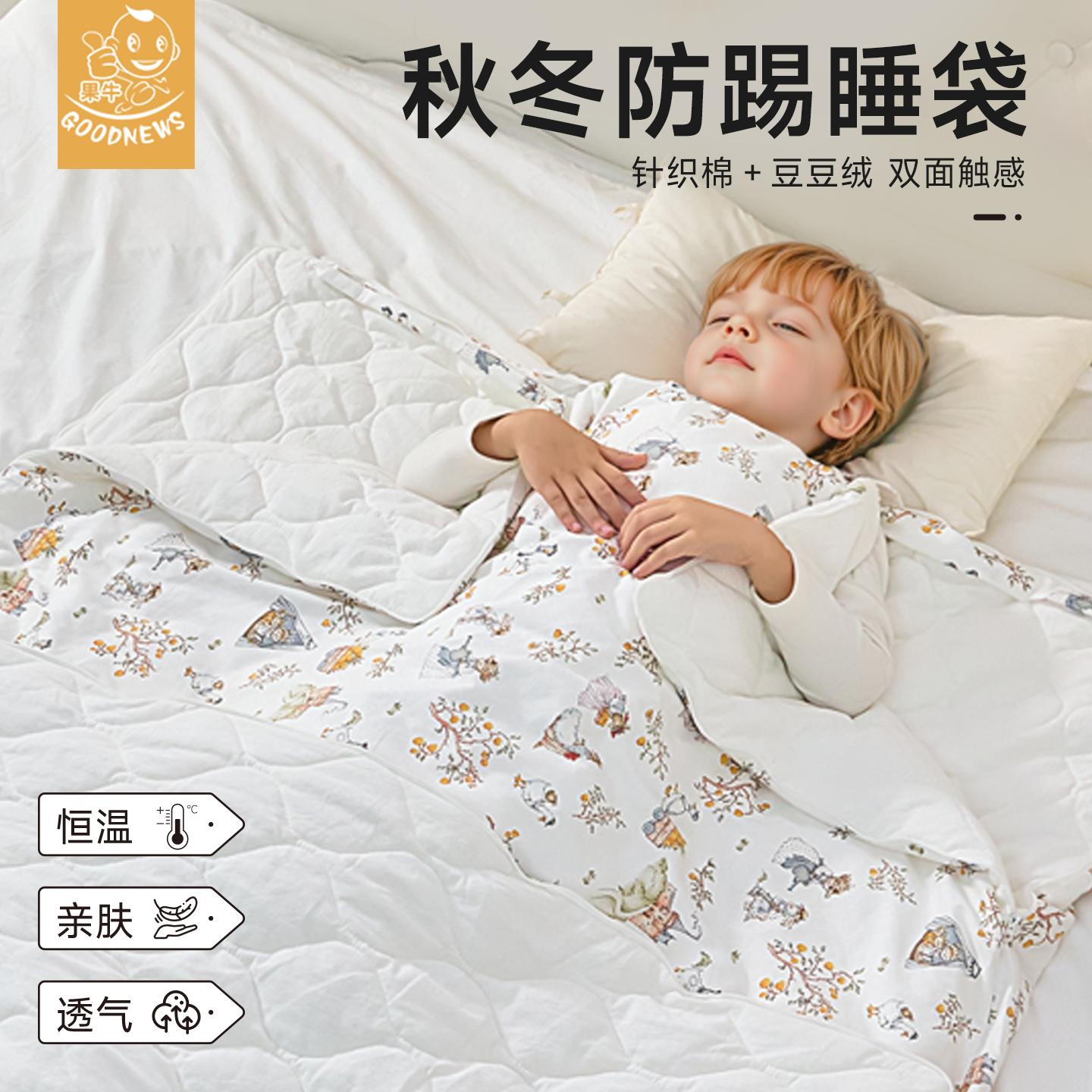 儿童防踢被睡袋婴儿冬加厚宝宝被子夹棉男女豆豆绒防蹬神器春秋款