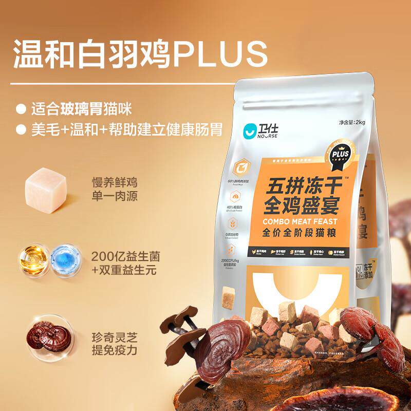 卫仕(NOURSE)五拼冻干猫粮鲜肉全阶段成幼猫乳鸽鹿肉高营养增肥发