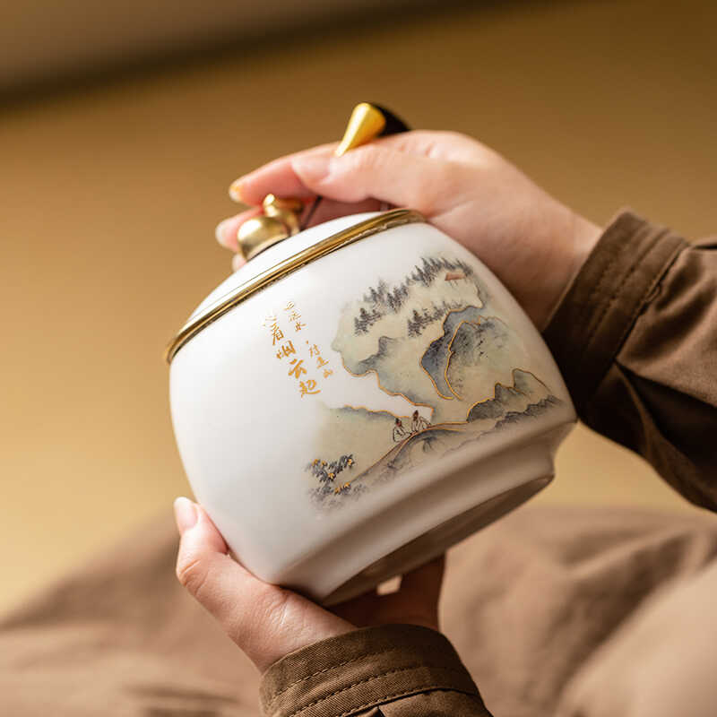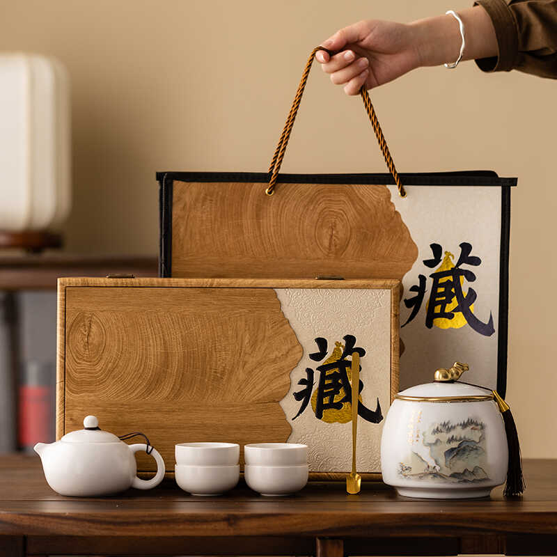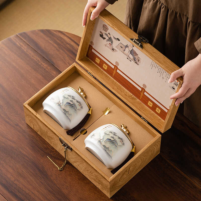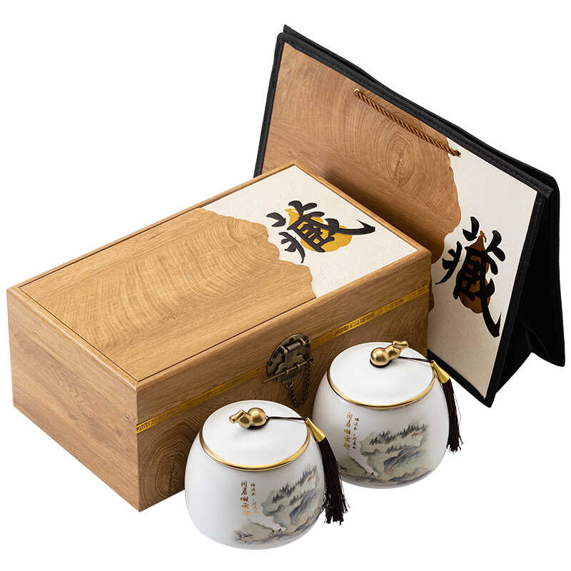 高档高档中式茶叶礼盒空盒陶瓷罐