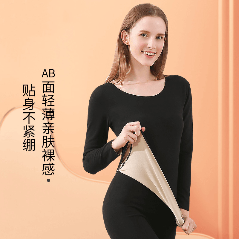 无痕AB面保暖内衣套装秋衣秋裤男士女士衣德绒打底衫加绒加厚