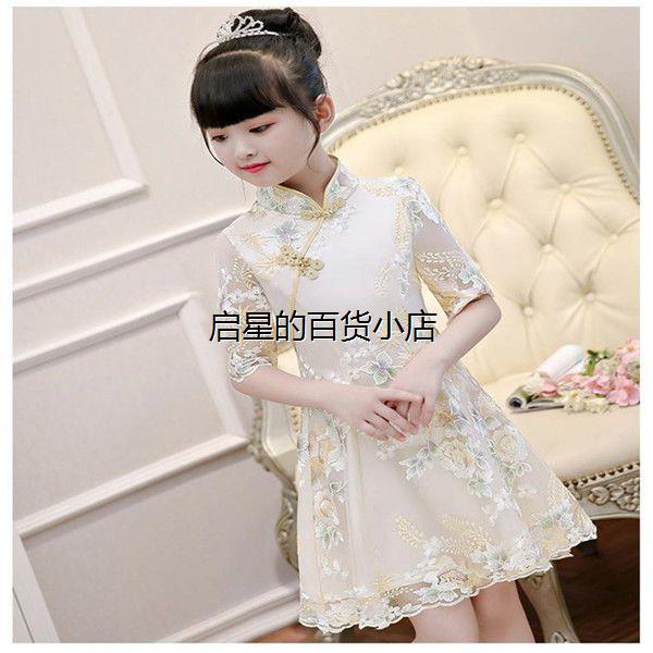 女童旗袍连衣裙夏季儿童礼服公主裙中国风古筝演出服女孩古装汉服