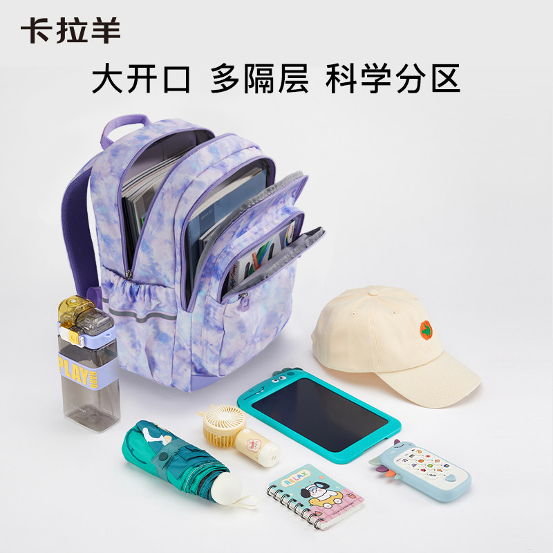 卡拉羊小学生书包减负轻便1234年级男女儿童背包可折叠双肩包2836