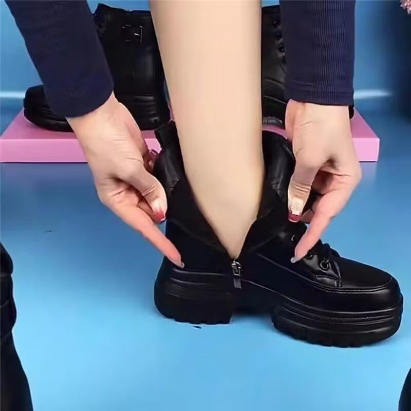 断码真皮厚底马丁靴女秋冬