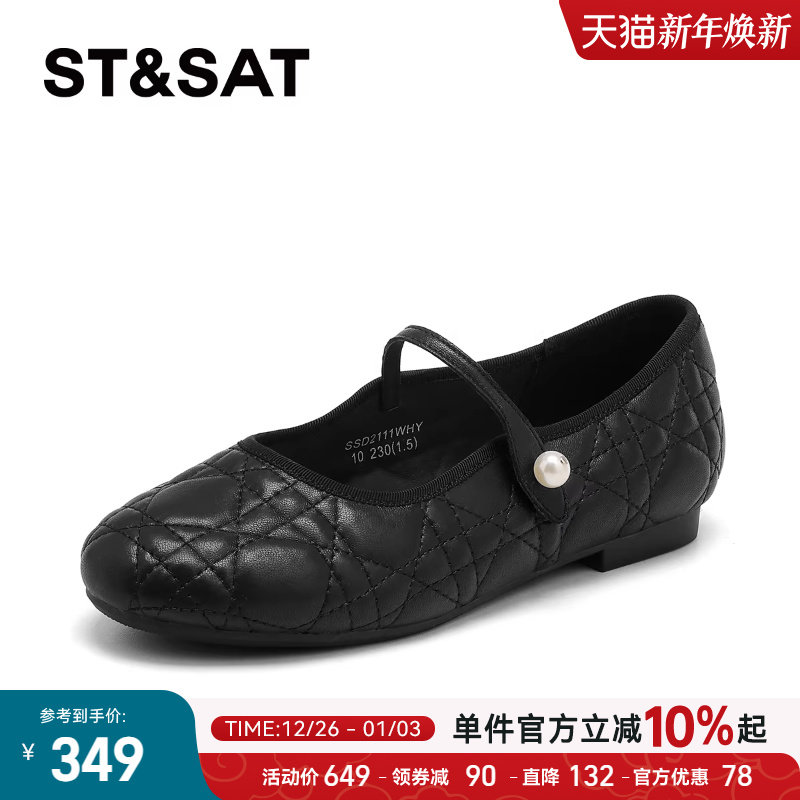 星期六羊皮玛丽珍鞋女2026新款春季软底法式一字带不累脚浅口单鞋