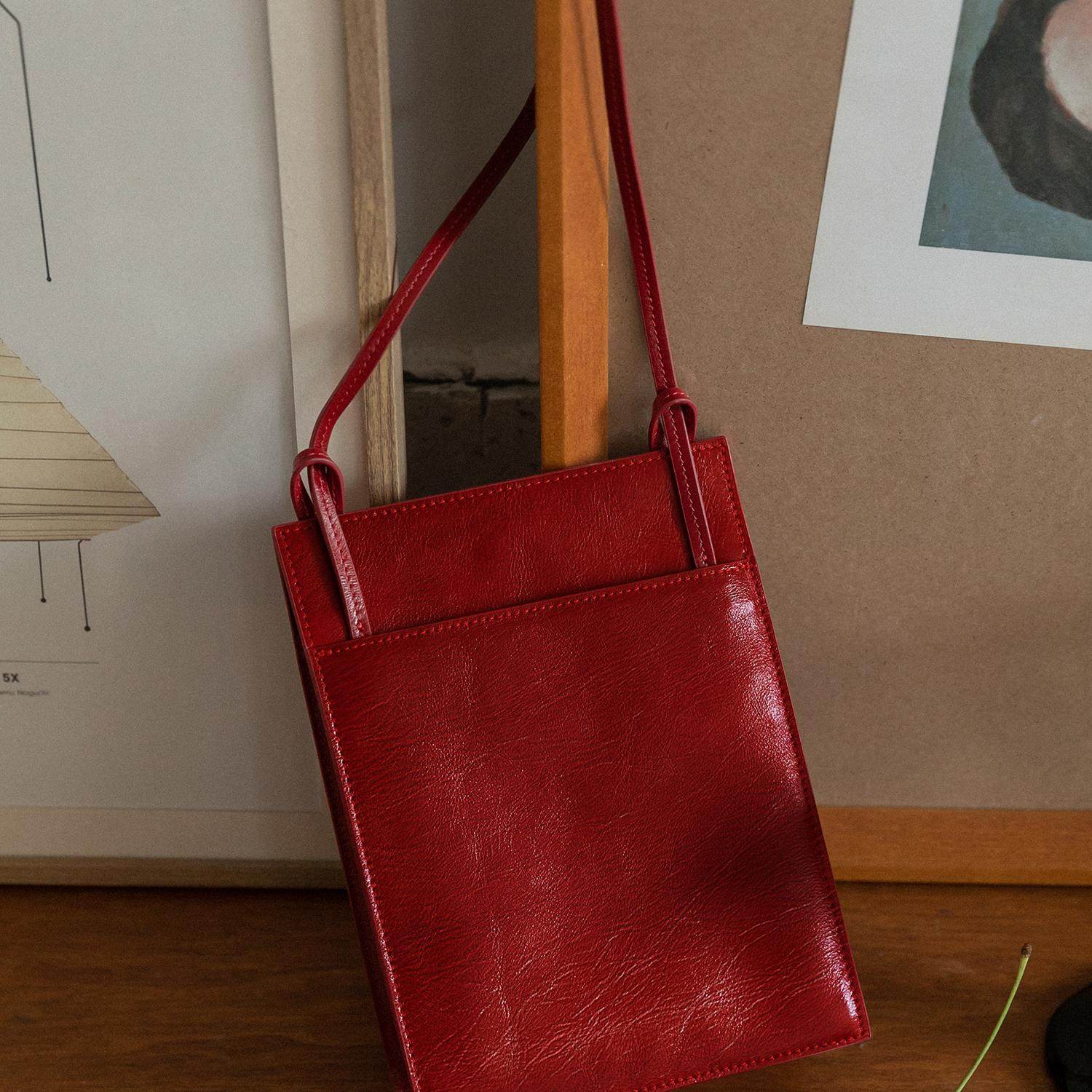 猴子家 新款女包复古头层油蜡抓纹吉祥小红包 迷你单肩斜挎手机包