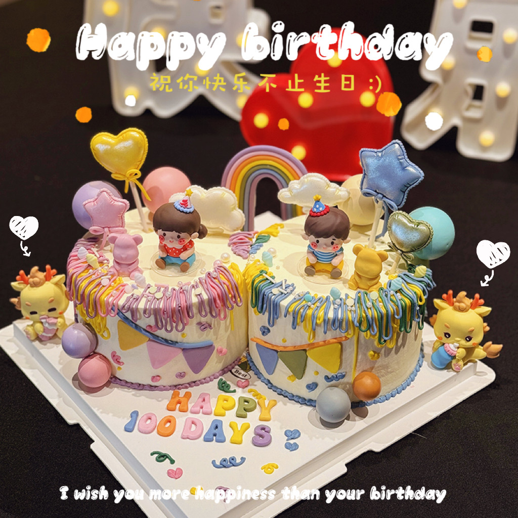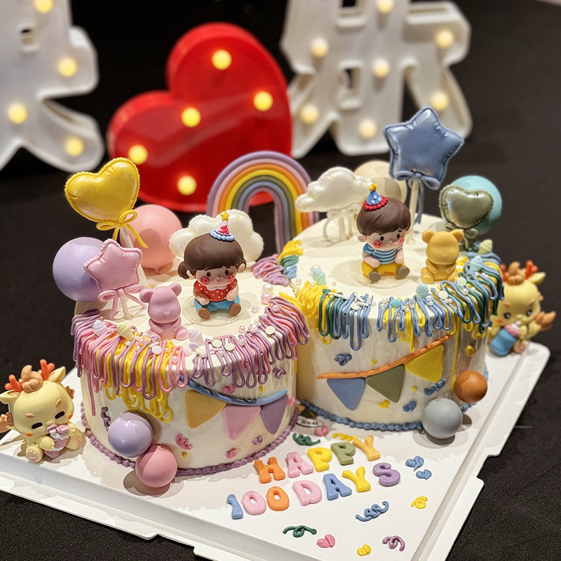 龙凤胎宝宝百日满月周岁生日插牌