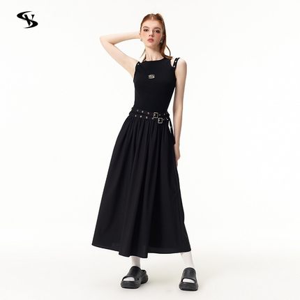 Vone SheeE设计感小众小香风裙子夏季女修身长裙黑色连衣裙背心裙