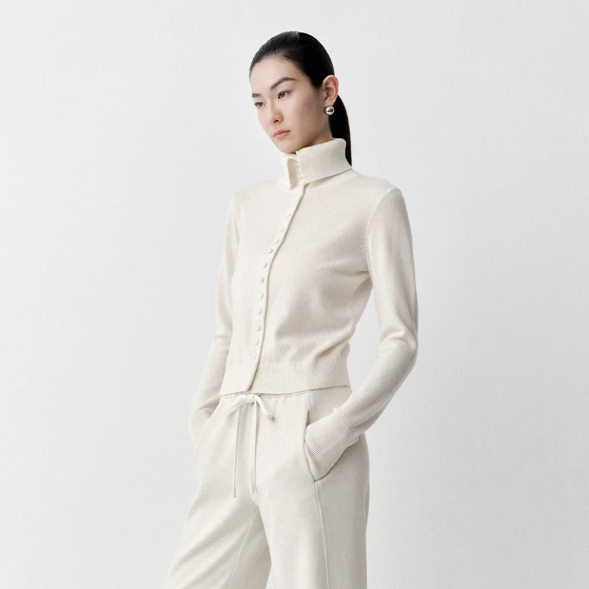 艾诺丝尚忆2025秋季新款修身显瘦单排扣高领针织衫女毛衣804173