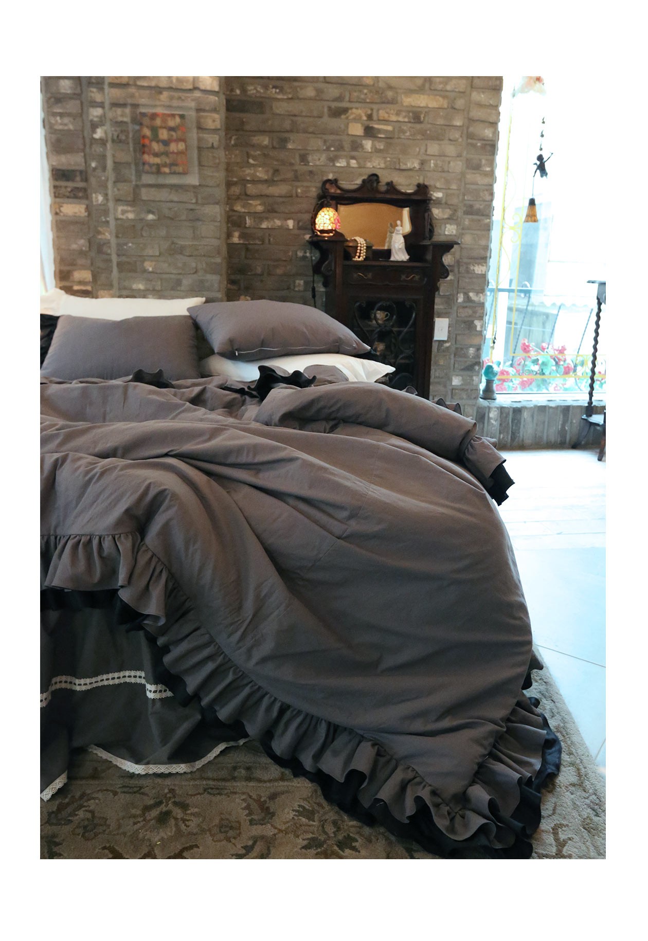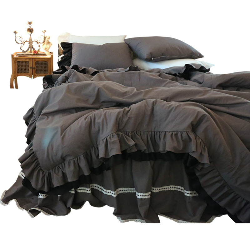 韩版公主INS纯棉纯色黑边蕾丝四件套全棉床上用品1.8