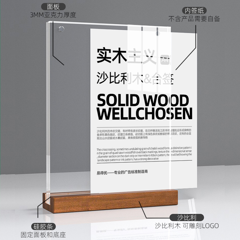 亚克力价格展示牌A4立牌桌牌高档木质底座台卡台签架奶茶店餐桌桌面摆台双面透明台牌定制菜单价目表广告牌子