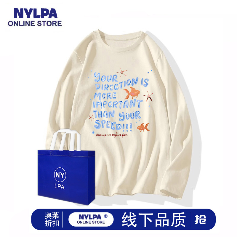 NYLPA美式卡通风玩味童趣印花重磅慵懒t恤男长袖夏季纯棉宽松休闲
