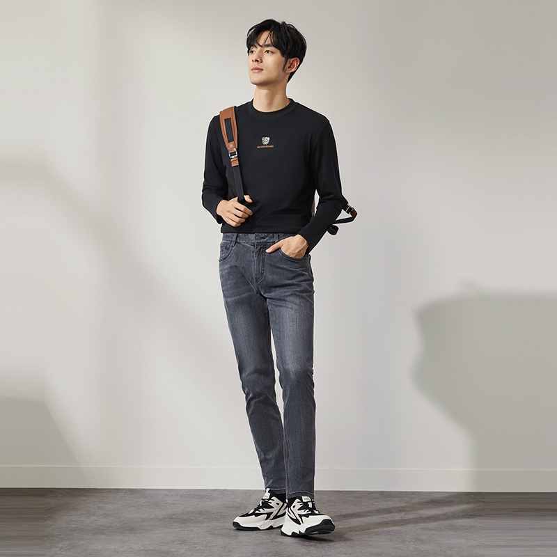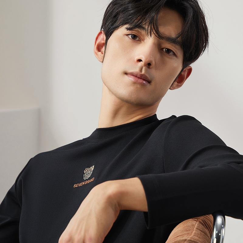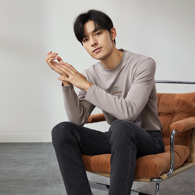 【莫代尔/远红外发热】柒牌圆领长袖T恤男士秋冬新款时尚百搭上衣
