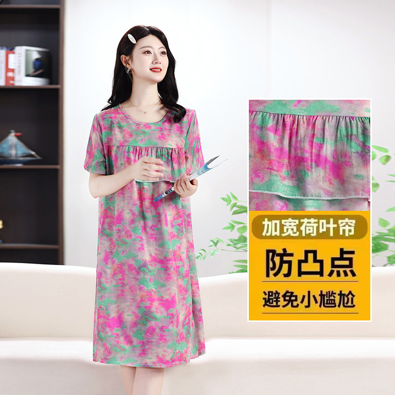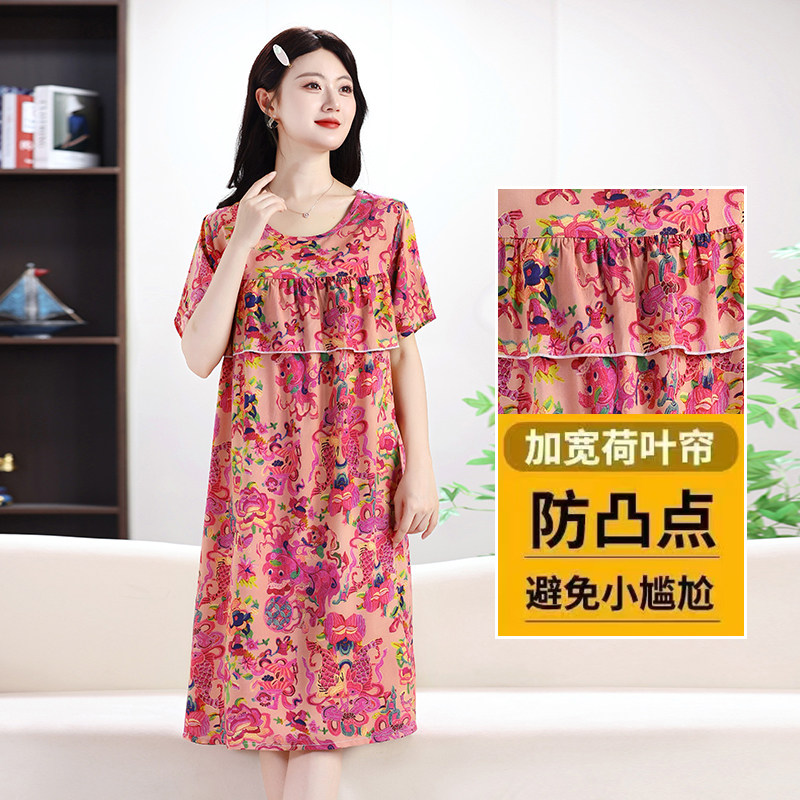 夏季薄款棉绸睡裙妈妈宽松大码防凸点连衣裙女士时尚碎花居家长裙