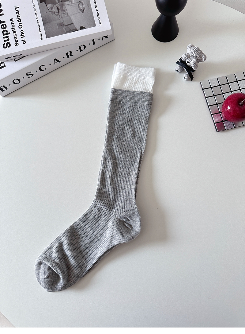 韩国东大门进口女袜 时尚简约百搭坑条拼色小腿袜 堆堆袜 中筒袜