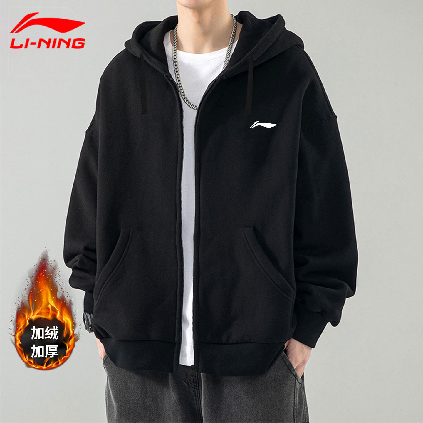 李宁加绒运动套装男士2025冬季连帽卫衣外套卫裤两件套跑步运动服