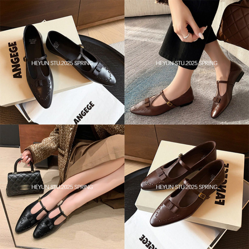 新款法式复古尖头平底玛丽珍鞋气质时尚百搭蝴蝶结丁字带浅口单鞋
