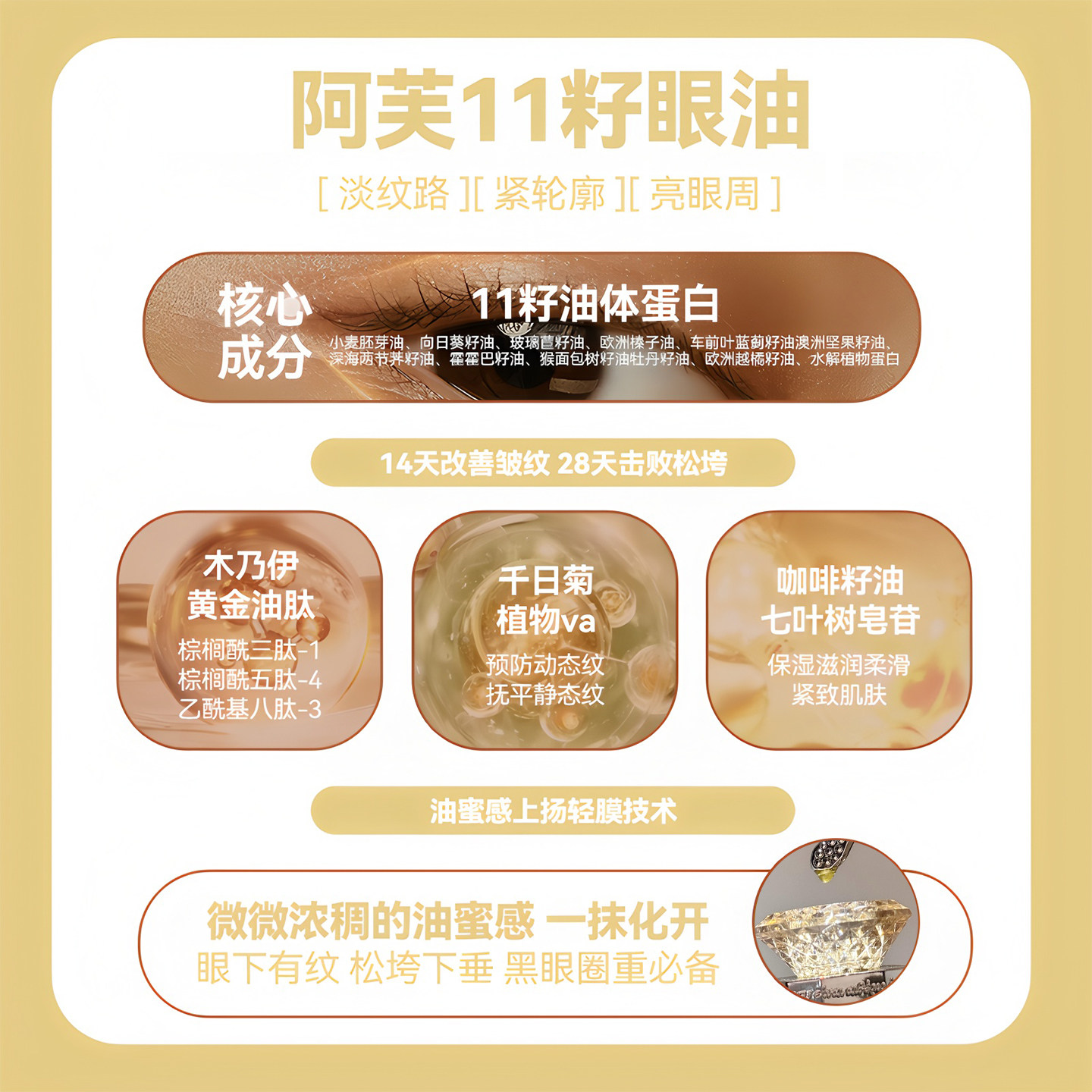 以油养眼!阿芙11籽权杖眼油淡纹紧致抗皱眼部精华油电动按摩眼霜