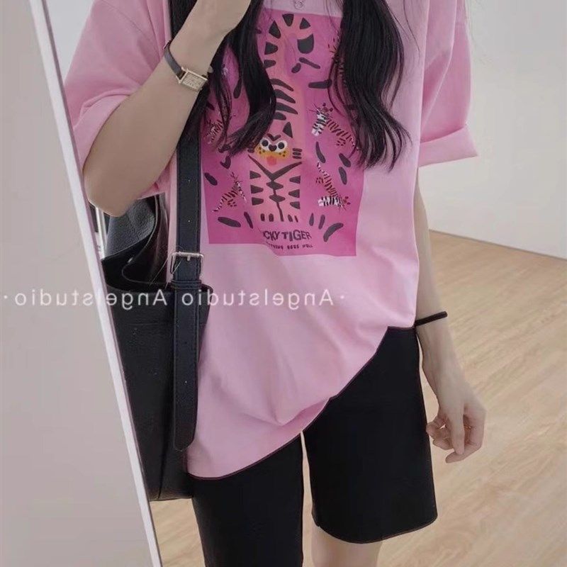 粉色短袖t恤女2025新款夏季宽松高级感减龄时髦百搭半袖小众上衣