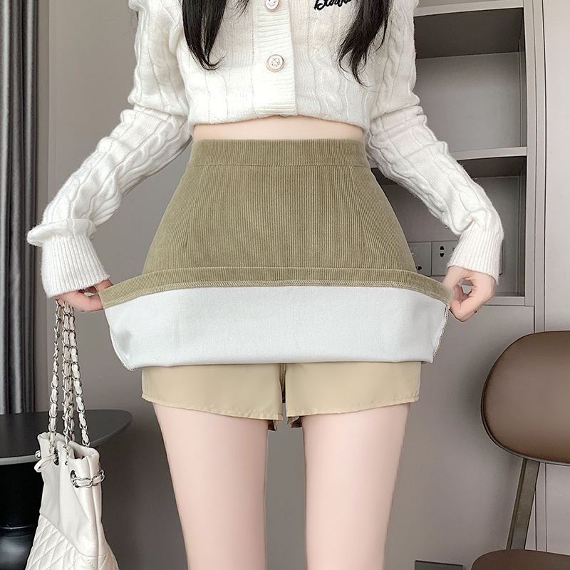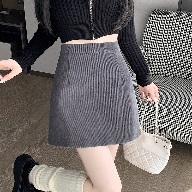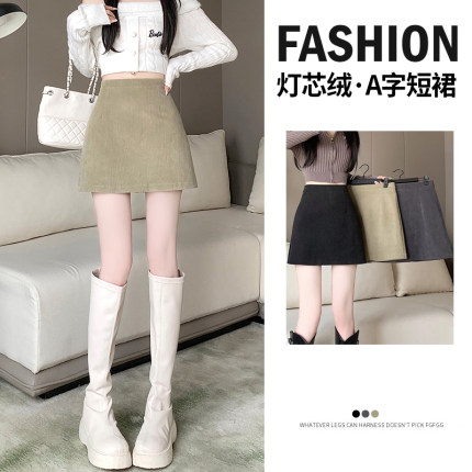 实拍灯芯绒复古A字短裙女秋冬防走光内衬简约百搭条绒包臀半身裙