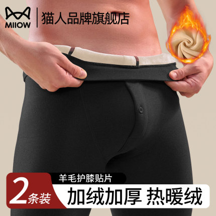 猫人男士保暖裤加绒加厚德绒羊毛护膝棉毛裤2025新款冬季打底秋裤